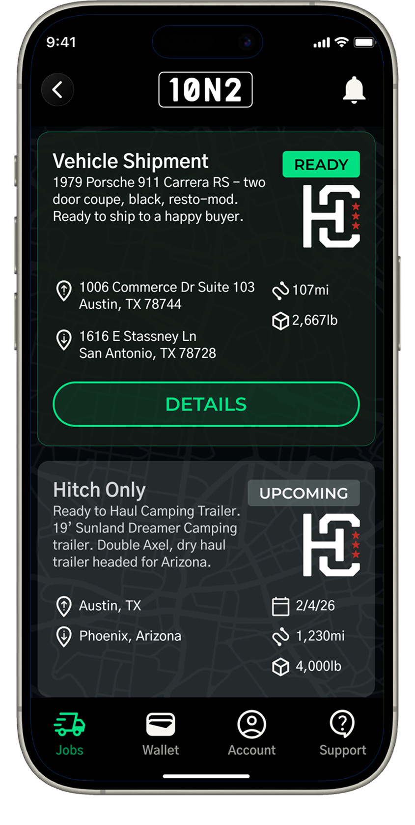 Businesses will post jobs with details such as payout, delivery due date, pickup and delivery location, as well as any unique details and requirements like particular equipment.